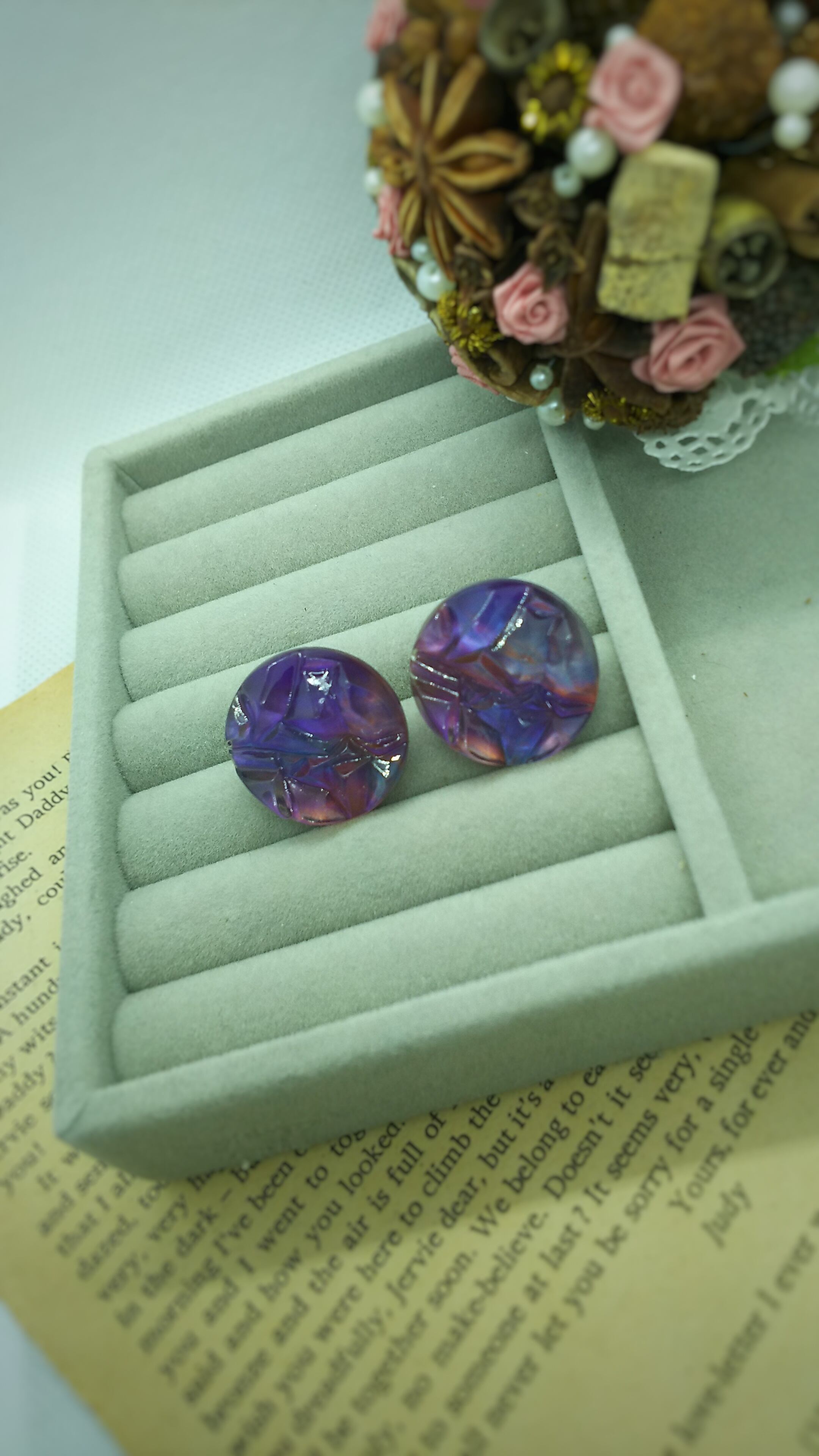 ⑩パープルヴィンテージボタンピアス