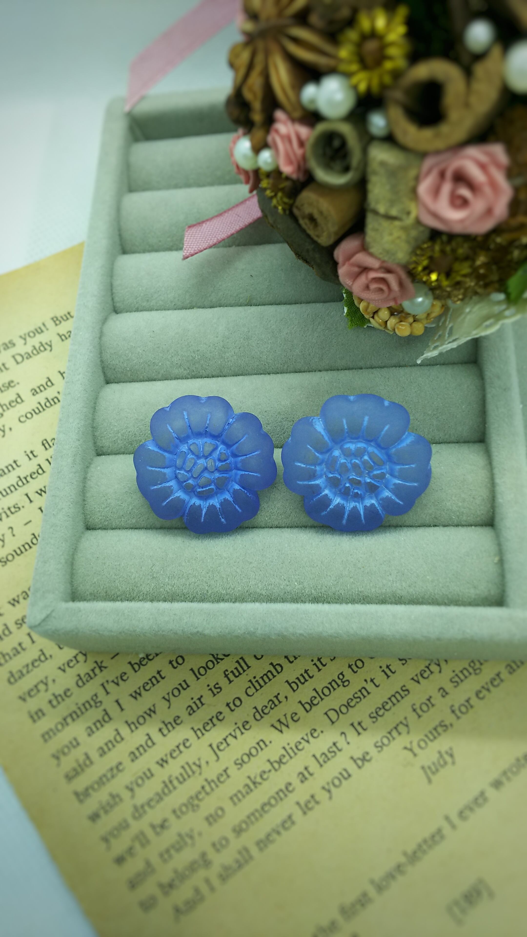 ④ブルー ヴィンテージボタンピアス
