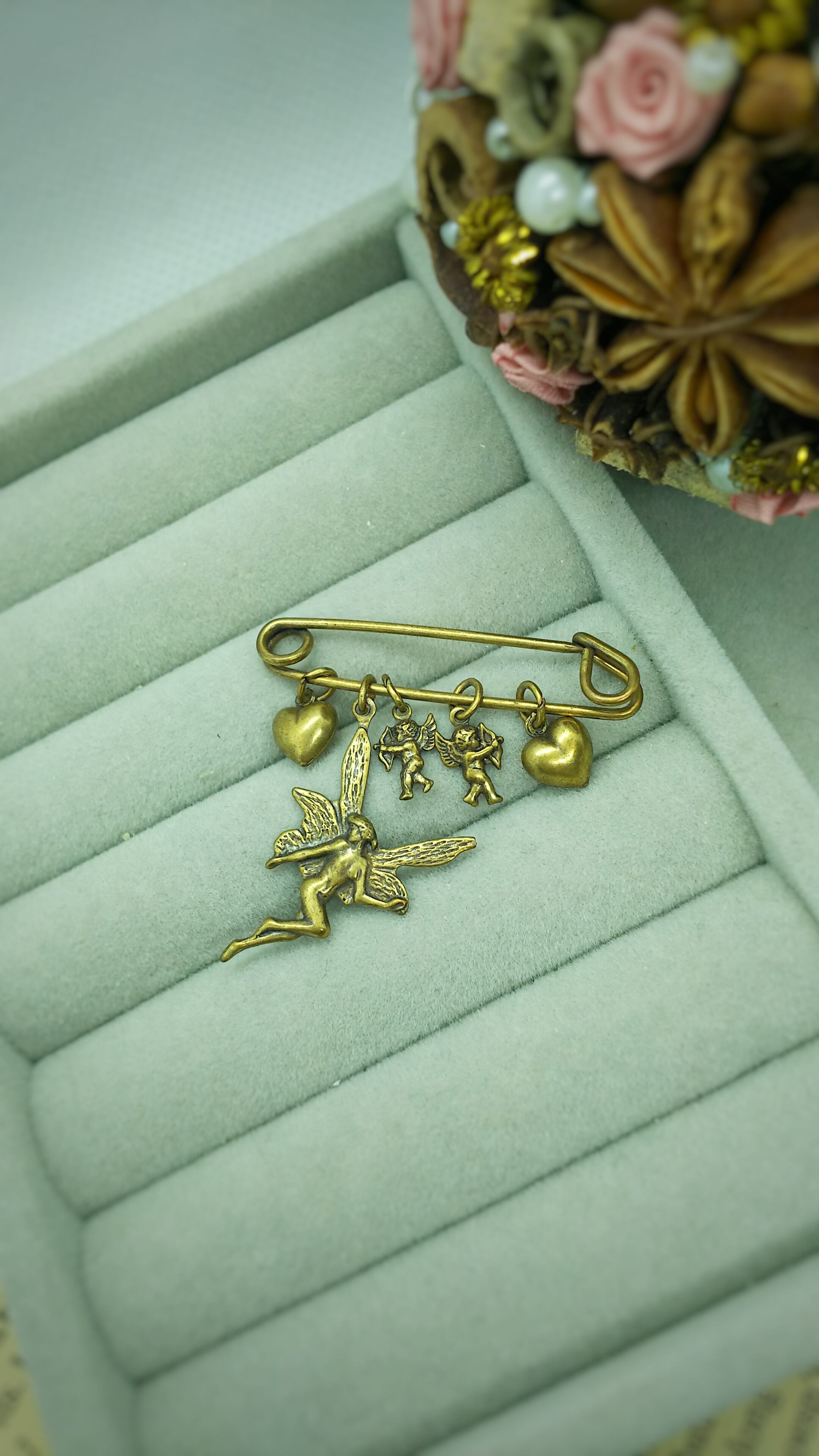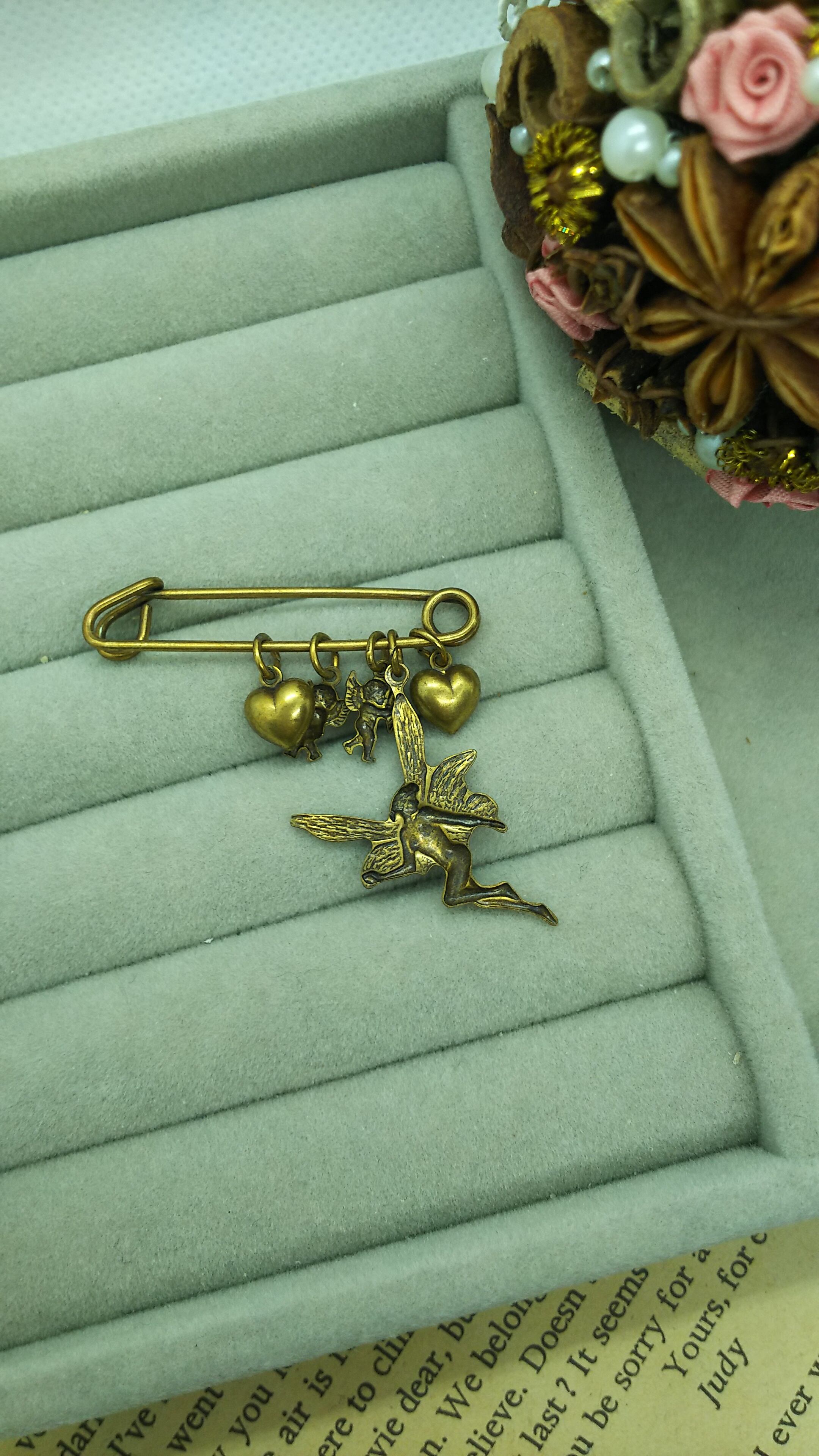 U.S.Aヴィンテージ ゴールドカラーブローチ 妖精と天使